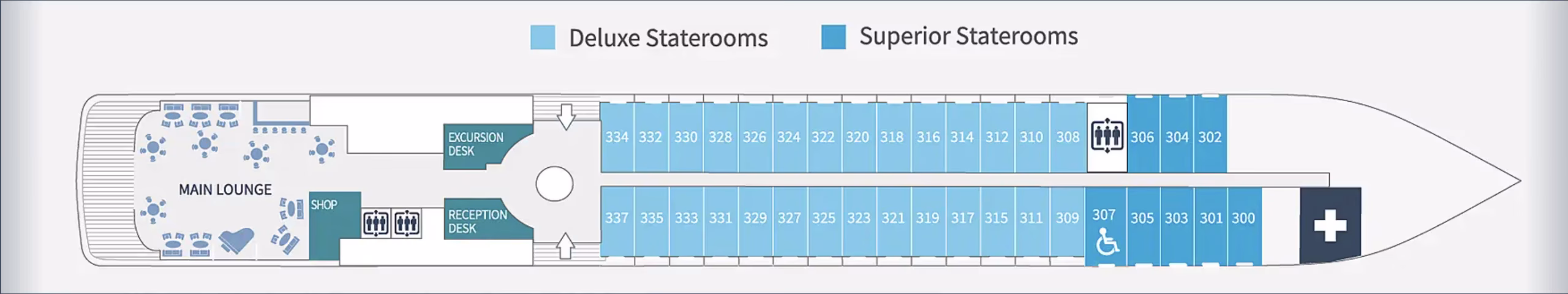 Le Soleal Deck Plans can be viewed below in detail by clicking on the images for each deck. Please note that cabin prices will vary according to the size and positioning of the cabins on the ship, as well as the dates of sailing.
