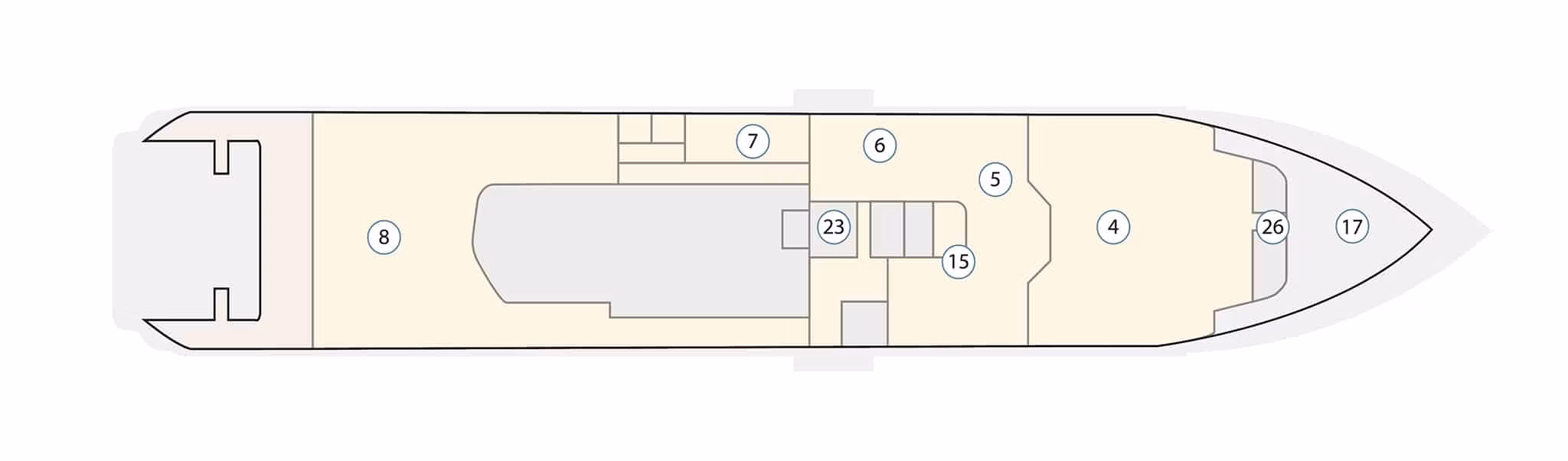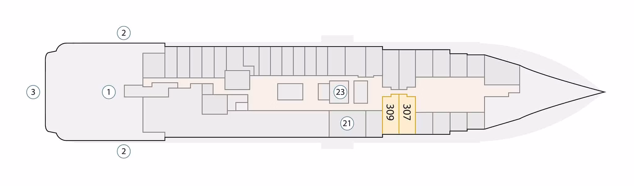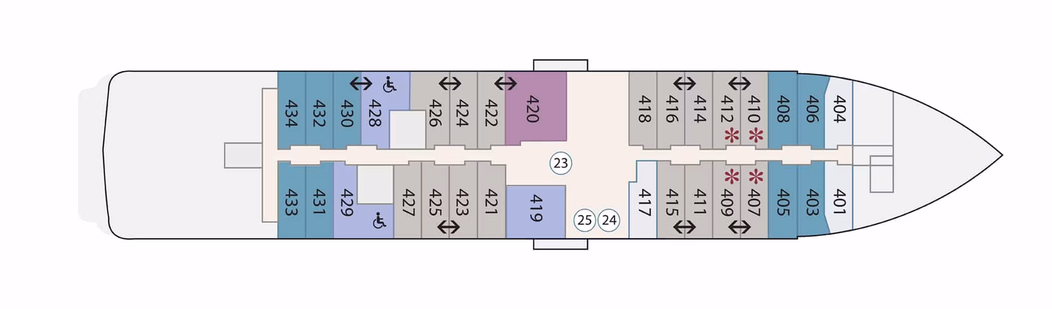 The Sylvia Earle Deck Plans can be viewed below in detail by clicking on any of the deck plan images for each deck. Prices may vary depending on the size and positioning of the cabins on the ship, as well as the sailing dates.