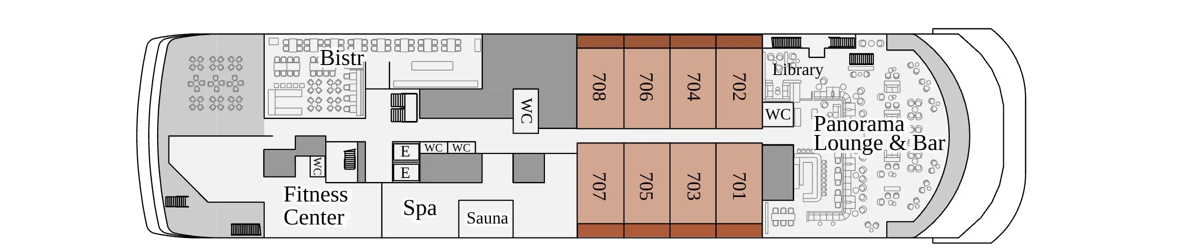 Explore the detailed Ultramarine Deck Plans by clicking on the images for each deck. Cabin prices vary depending on their size, location on the ship, and selected sailing dates.